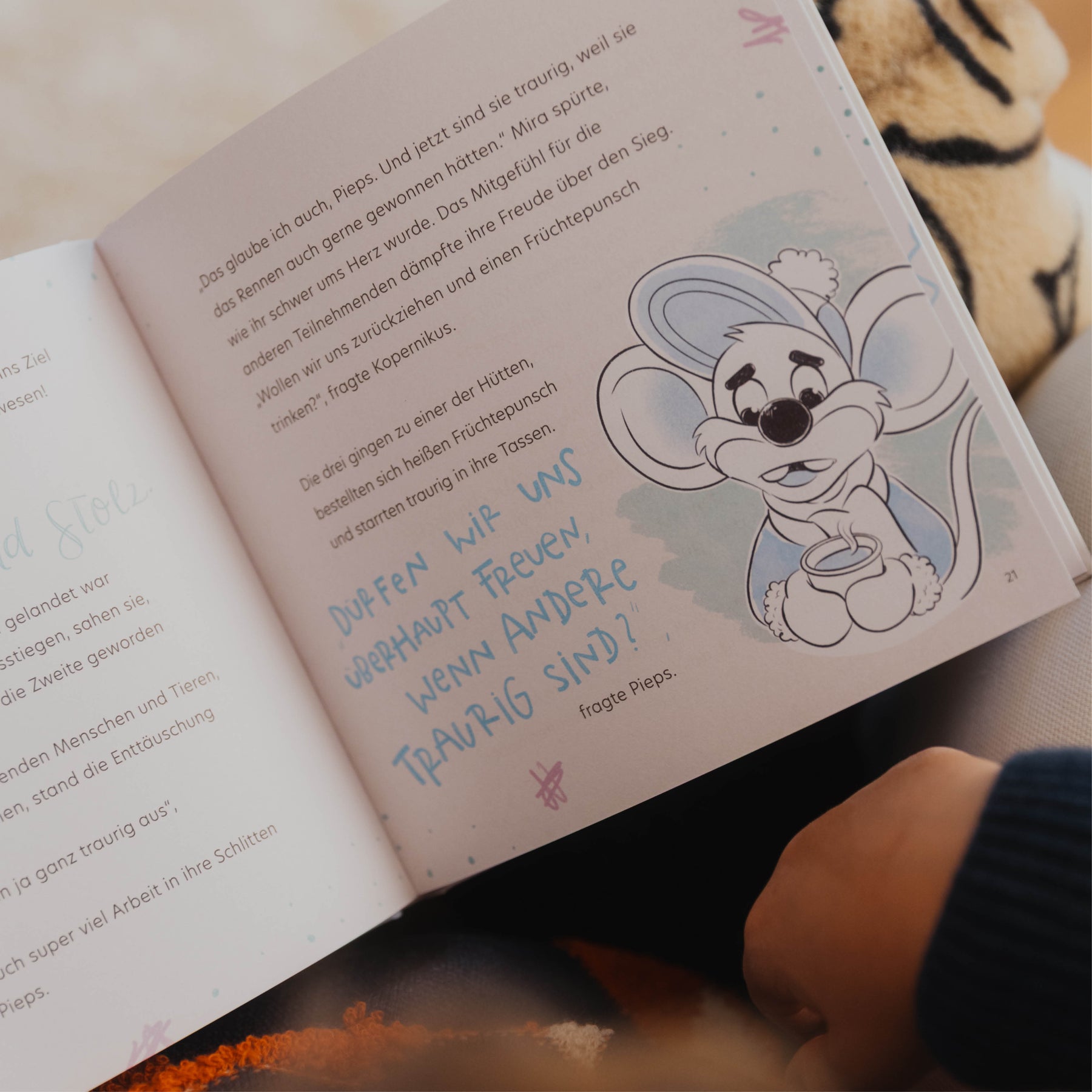 Wochenlang hat Kopernikus an einer brandneuen Erfindung getüftelt. Nun ist es endlich so weit: MiRA, Kopernikus und MC Pieps nehmen am großen Schlittenrennen teil und gewinnen! Doch während sie jubeln, sind die anderen Teams enttäuscht. MiRA & Co. fragen sich: Dürfen wir uns überhaupt freuen, wenn die anderen traurig sind? Zum Glück ist Alfonso der Affe zur Stelle und zeigt ihnen, dass Freude und Mitgefühl sich nicht ausschließen. Alle Gefühle dürfen nebeneinander da sein und es ist immer okay, stolz auf sich und seine Erfolge zu sein. Am Ende entpuppt sich Kopis geniale Erfindung sogar als großer Gewinn für alle.